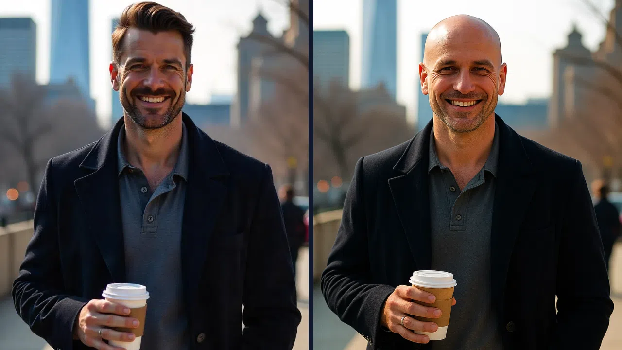 En los mejores casos, el sistema analiza la zona del pelo, reconstruye la parte del cráneo que no se ve en la foto original y la rellena con texturas de piel coherentes con el resto del rostro. El resultado es una cabeza rapada que parece real, como si esa persona se hubiera pasado por la barbería cinco minutos antes de hacerse la foto.